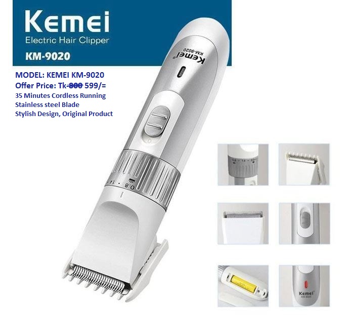Kemei KM-9020 Exclusive Rechargeable Hair Clipper & Trimmer – Silver & Golden